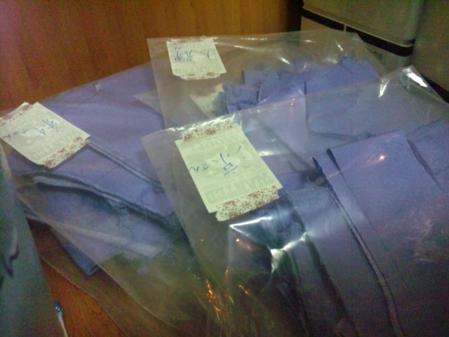 ロックミシンをかけたいので、皆の生地を預かってきました。