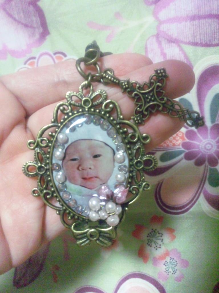お知らせメールと一緒に送られてきた赤ちゃんの写真を、またまたレジンに綴じ込めてみました(*^^*)