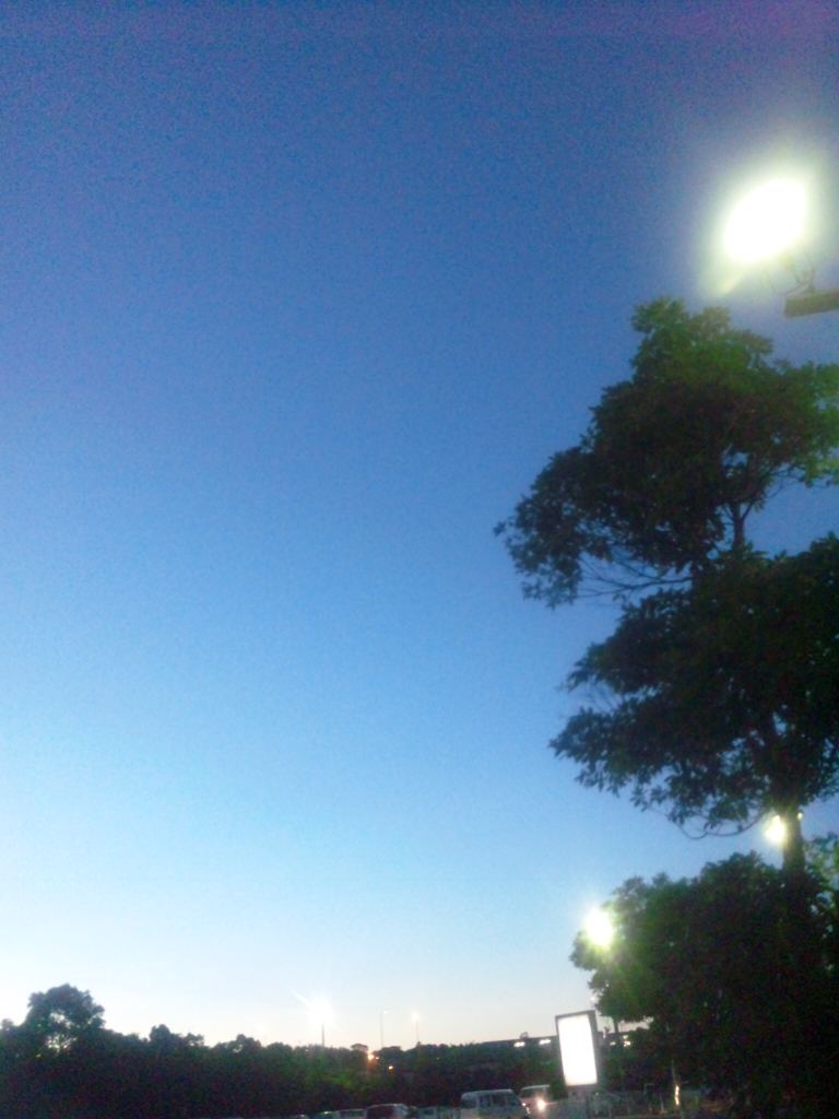 夕暮れの時間、今日は夕焼けもなく暮れていき、コバルトブルーのグラデーションがめちゃくちゃ綺麗な空でした。