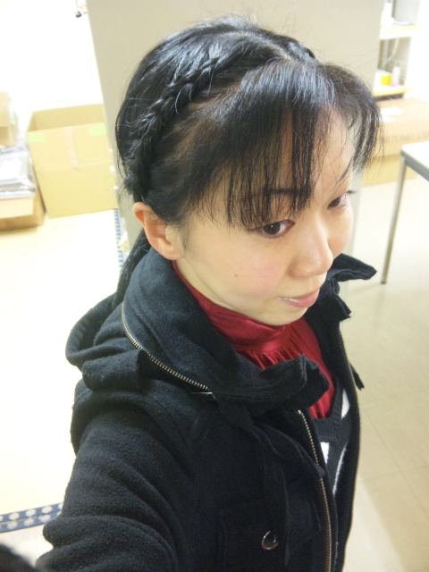 分け目を出すと滑稽なので(;´・`)、今日は余り目立たないくくり方で出かけました。