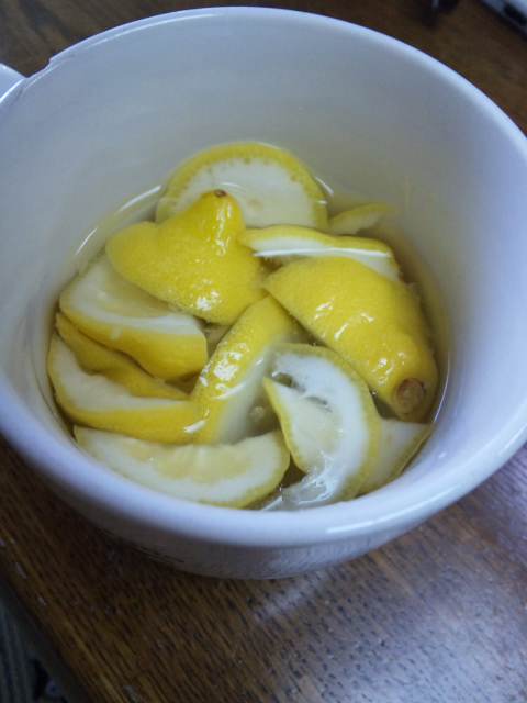 レモンの切れ端が勿体ないので、皮も磨いたことだし即席蜂蜜レモン♪
