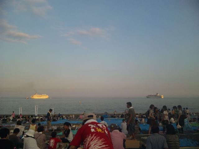 目の前は一面オーシャンビューなのに、3尺玉ってば視界からはみ出す!(笑)