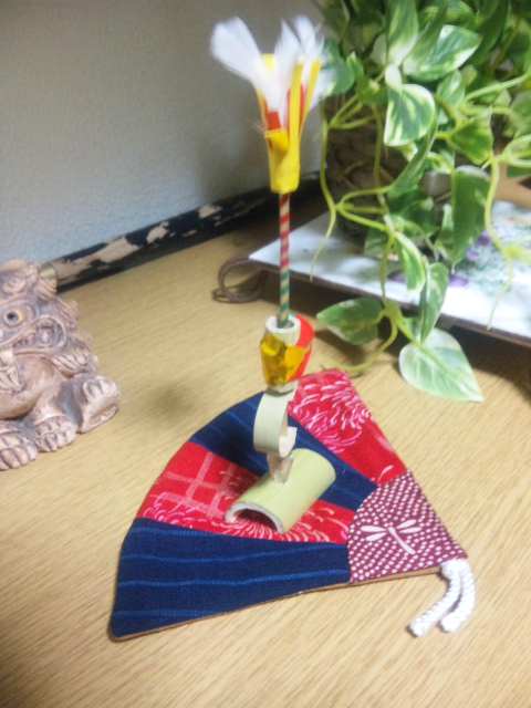 昨年使っていたハンカチをお寺に置き去り昨年の厄を払い、母は『さるはじき』を購入。